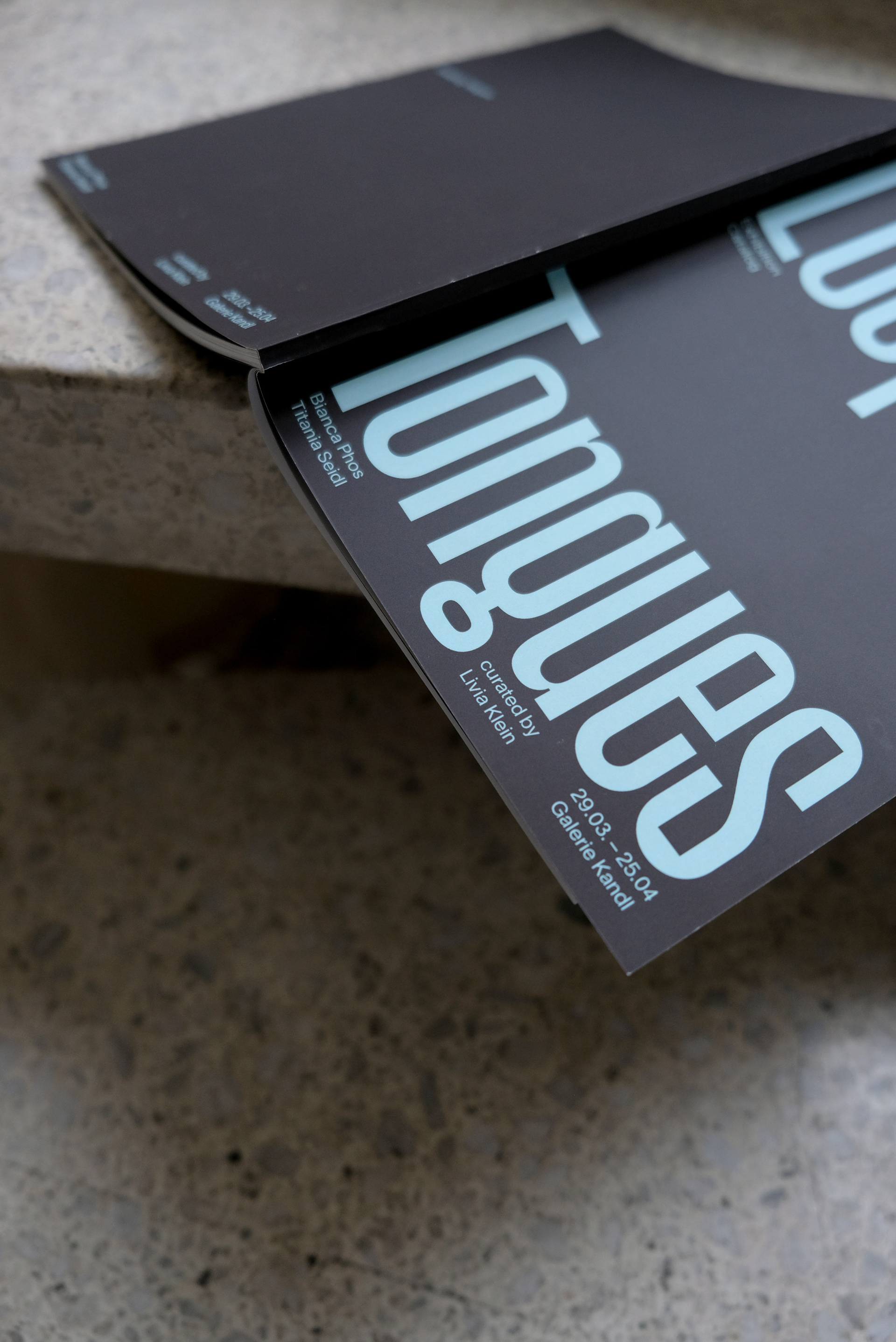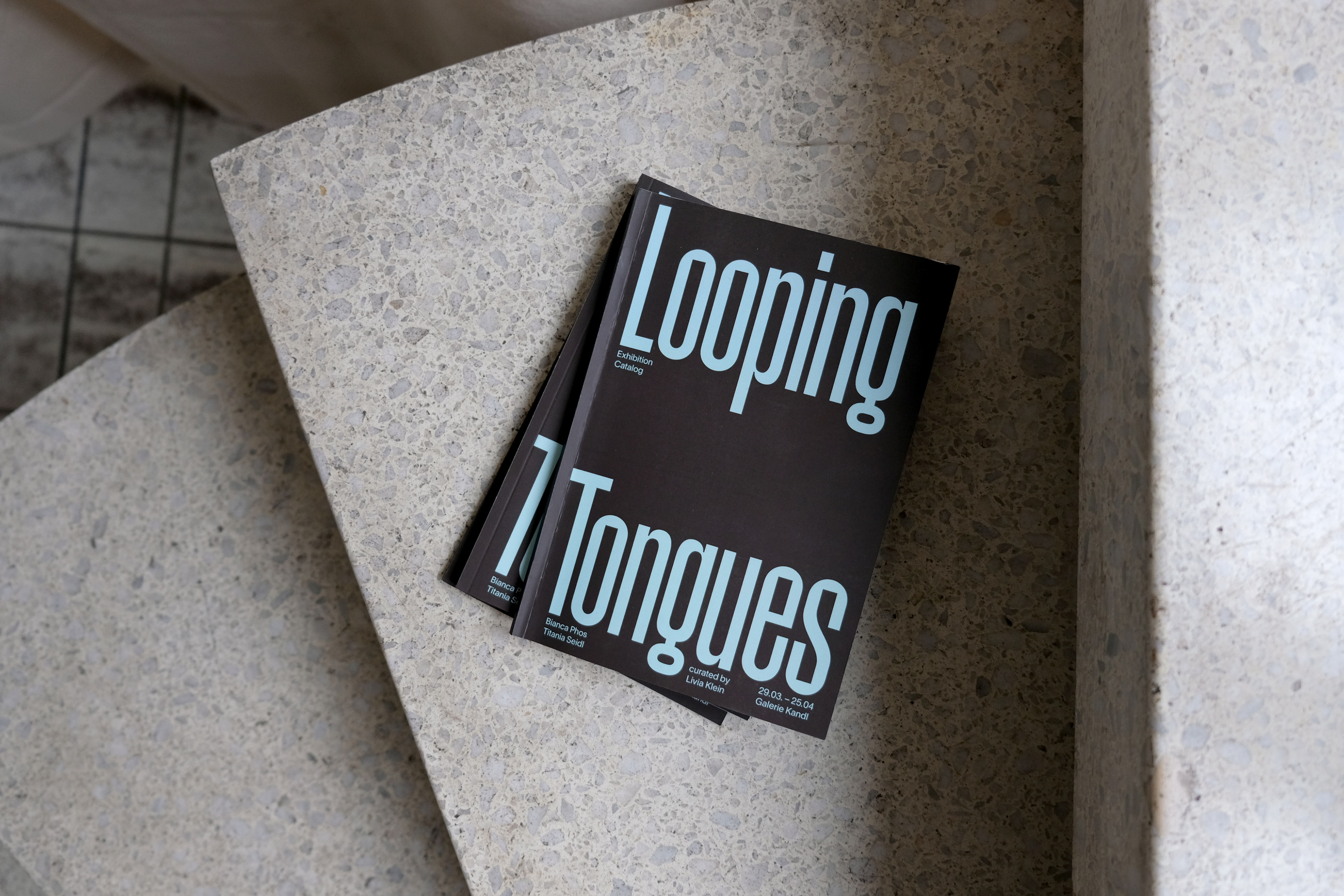LOOPING TONGUES schafft einen Dialog zwischen den beiden Wiener Künstlerinnen Bianca Phos und Titania Seidl, der sich mit dem Thema scheinbar unvorhergesehener und unsichtbarer Verstrickungen auseinandersetzt und Fragen nach einer gemeinsamen und solidarischen Zukunft zwischen Individuen aufwirft. Zusammen mit der Grafikerin Andera Eiber entstand in einem Dialog die Grafik zur Ausstellung. Die Grafik greit das Thema der unscihtbaren Verstrickungen durch dessen Farbwelt auf, durch welchen ein Miteinander entsteht. Der Fokus lag dabei auf dem Ausstellungskatalog, der begleitend zu Ausstellung erschienen ist.